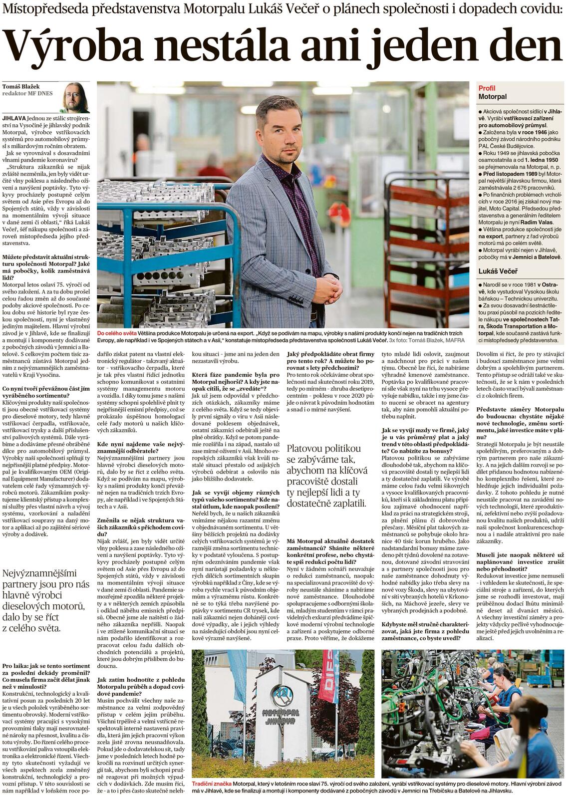 PETR DUFEK: PANDEMIE ZMĚNILA I ROZVRÁTILA ZABĚHLÉ DODAVATELSKO-ODBĚRATELSKÉ VZTAHY A PŘIMĚLA NÁS PŘEMÝŠLET O TZV. DEGLOBALIZACI