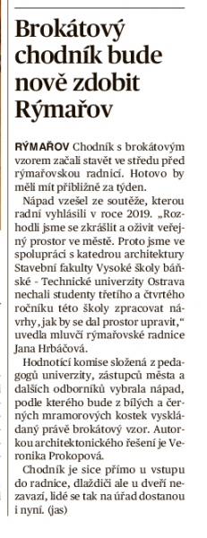 Brokátový chodník bude nově zdobit Rýmařov