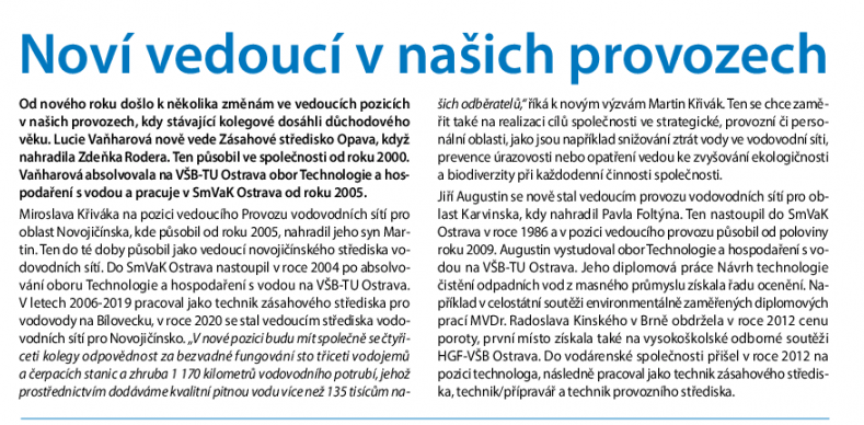Změny ve vedení SmVaK Ostrava: nové vedení vodovodů i Ostravského oblastního vodovodu